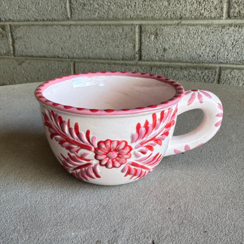 Petite and beautiful! Designed and painted by Kathy Cano-Murillo, fired in her kiln. Blush base with pink, cream and red accents.